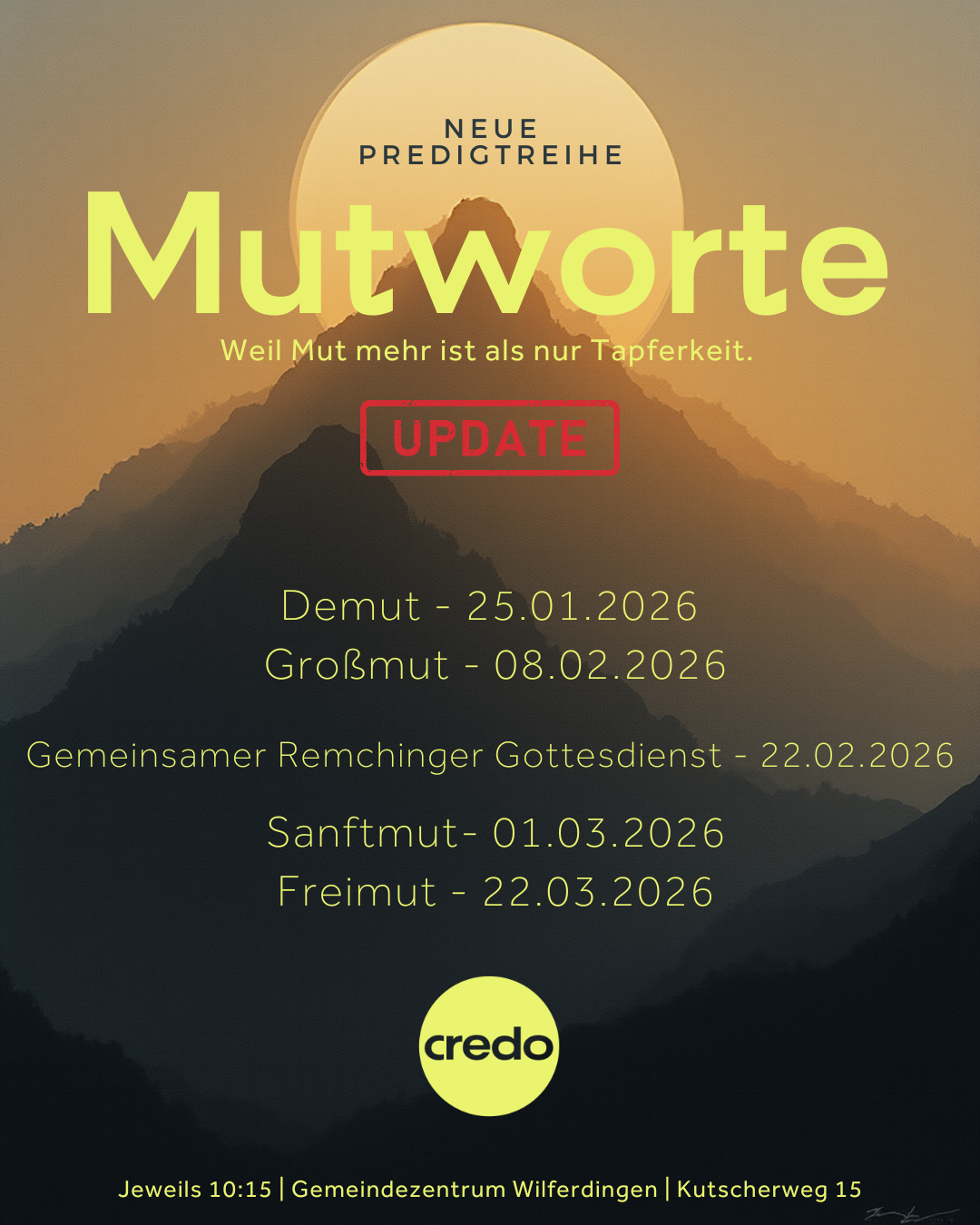 Mit Credo wollen wir als Teil der Badischen Landeskirche Gottesdienst neu gestalten und zusammen wachsen. Wir möchten, dass Menschen aus Remchingen und Umgebung eine geistliche Heimat finden und wir zusammen im Glauben wachsen und immer mehr zusammenwachsen.